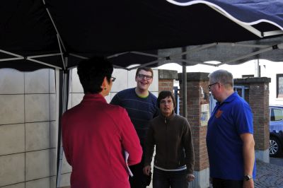 Die Sänger der Discordia86 haben schon mal das Zelt aufgestellt. Bei ihnen gab es Erbsensuppe mit Wurst. Gesang? Ja, natürlich, den gab es erst später auf der schönen Sandsteintreppe.