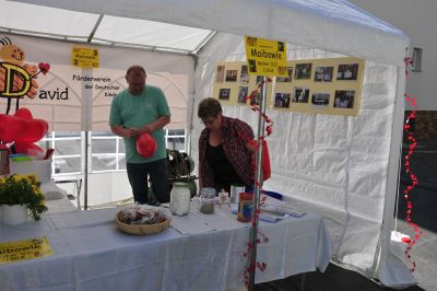 David Förderverein der deutschen Kinderherzzentren e. V., der Verein präsentierte seine Arbeit mit Infomaterial und Fotos. “Was gibt es denn bei euch außer Info?” Maibowle super lecker. Ein Schätzspiel, Luftbalons und es konnte Leitergolf gespielt werden. Fruchtgummibären drufte man im vorbeigehen stibitzen.