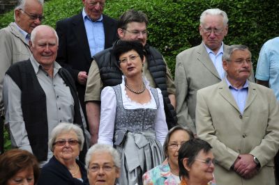 Umgeben von seinen Sängerfreunden berichtet Andreas Petri ehemaliger Ortsvorsteher von der Idee eines Dorfplatzes und dem langen Weg bis zu seiner Verwirklichung. Er sagt Dank an alle die dazu beigetragen haben.