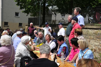 Die Bleidenstadter Sänger haben sich den Dorfplatz als Wanderziel ausgesucht und machen was bei einem guten Glas Wein?