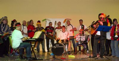 Der Frauen und Männerchor Wingsbach begab sich auf die Reise zur Fußball Weltmeisterschaft.Stark wie ein Tiger und mit dem Flieger landeten sie schließlich in Brasilien,aber schon beim Humba Täterä hielt es keinen Narren mehr auf seinem Platz.Die Miniband mit Thomas Wagner als Chorleiter und am Klavier, Jan Niklas Schlagzeug, Luisa Horlacher Akkordeon, Klaus Helm Gitarre brachte den richtigen Schwung in die Darbietung.