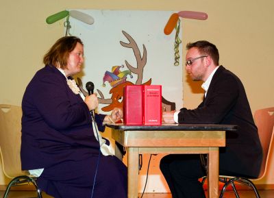 Sonja Pfeiffer und Sebastian Klein spielen eine Szene in der Kanzlei.Der Anwalt ist sichtlich erstaunt, was seine Klientin als Scheidungsgrund vorbringt.Bis zum Schluss die Bombe platzt.”Der Sohn aus ihrer Ehe ist nicht von ihrem Mann!” Oh, ha, wie peinlich.