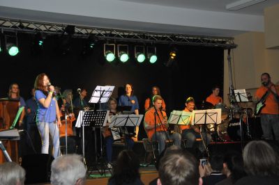 In der bis auf den letzten Platz ausverkauften Turnhalle gab es Live-Musik von der eigens dafür gegründeten “Projektband - TGV 100”. 27 Musiker/ innen und Sänger/ innen von 10 bis 79 Jahren brachten den Saal zum Kochen mit Hits von Abba über Beatles und Udo Jürgens bis Frank Sinatra .