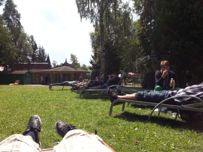Dienstag 13.08. Freizeitpark Geiselwind Sonnige Liegewiese - die Betreuer dürfen mal etwas ausspannen, denn die Kids haben ihren Spaß.