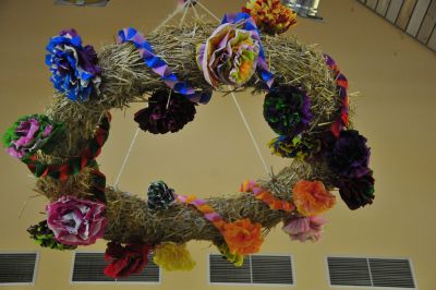 In der Scheune des Hofes Forst, also beim Forschte Werner wird der Wagen des Kindergarten Sonnenbär Wingsbach heraus geputzt. Alle die mit Papier und Schere umgehen können helfen mit: