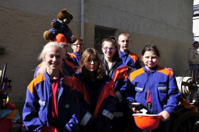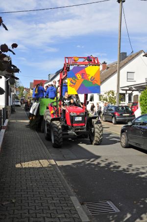 Dem Auto des Kerbepaares folgte die Kerbegesellschaft Wingsbach mit 25 Aktiven. Auf dem nächsten Wagen hatten die Ehemaligen Kerbemädcher-und Burschen einen Platz gefunden. Gut zu erkennen an der goldenen Zwanzig. Hier leider nicht zu sehen.