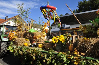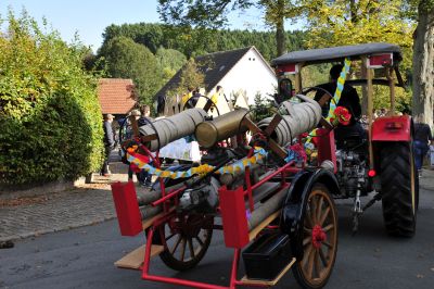 Wer hier mitgearbeitet hat ist unschwer zu erkennen Jürgen Behrens natürlich.Sör Röhr freut sich über 20 Jahre Wingsbacher Kerb. Rechts der Erntewagen. Reinhold Hieß ist immer noch involviert und liefert gerne die Grundausstattung.Am Steuer des Treckers saß sein Sohn Günter.