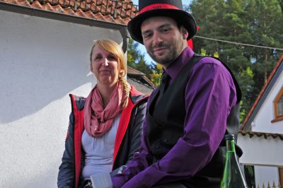 Nobel geht es heute zu, in dieser Karosse fahren Jana und Pascal durchs Ort.