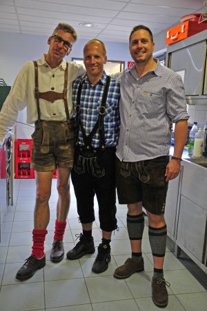Zünftiges Outfit die “Burschen vom Ausschank” Die drei Mann von “Strinz Pure Handmad” machten richtig Stimmung in der Bude.