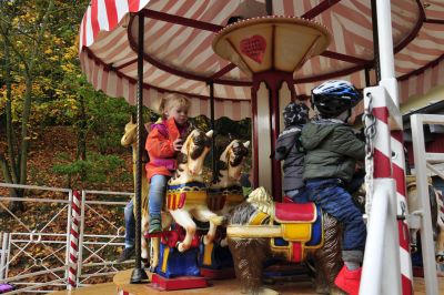 Dienstag 3. Okt. 10.20 Uhr Frühschoppen vor der Halle. Das Wetter spielt wieder mit und ich begrüße etliche Leute, die mir stolz verkünden:”Ei, mer habbe schon gesse!”Okay, aber ich bin nicht zu spät,es gibt genügend Speis und Trank. Weißwurst und Spießbraten Brötchen schmecken lecker. Das Karussell dreht kostenfrei seine Runden. Das Kassenhäuschen wird nicht gebraucht, sieht aber sehr dekorativ aus. “Hau den Lukas”, hier sind gerade die Mädels an der Reihe. Die Männer lassen locker die Glocke klingen,vielleicht etwas mehr Kraft, oder so? Jetzt lockt ein anderer Duft mich zwei Schritte weiter, hmm....,Popcorn.Tim macht das fachmännisch. “Gemoje un Prost!” Die Herren am Stehtisch genießen Wein und Bier. Wer schaut denn da aus dem Fenster? DJ Ingo strahlt wie immer und ist für den besondern Sound zuständig. Richtig schnuckelig hier, klein, aber es ist alles da.