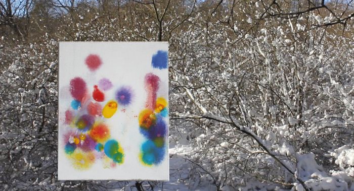 Beim „Site-specific Research“ male ich abstrakt. Die Bilder entstehen ohne Plan und sind abstrakt. Ich setze in den Bildern das Licht, die Farben und die Strukturen der Landschaft um. Ich übersetze in meine Malerei, was ich sehe, aber auch Wärme oder Kälte, Wind oder Bewegung, Lärm oder Ruhe.