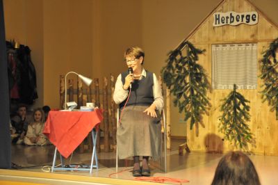 Die Oma Schmitz fühlt der Gemeinde mal etwas auf den Zahn.”Ja, früher wurden hier so schöne Stücke auf die Bühne gebracht, aber heute: die Kinder haben keine Zeit und keine Lust mehr am Krippenspiel dabei zu sein.!” “Ja, liebe Gemeinde und nun hocken wir in der leeren Kulisse und nix passiert!