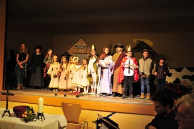 Nach herzlichem Applaus wurden die Mitspieler von Manuela der Gemeinde vorgestellt.Alle sind sehr erleichtert, dass alles so gut klappte. Einfach Klasse!