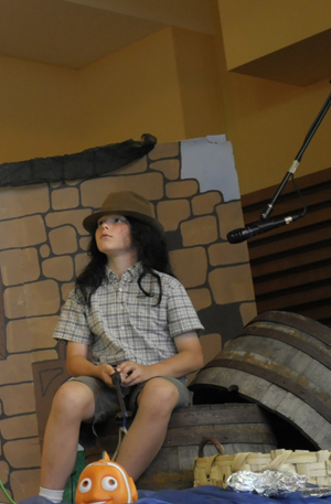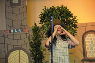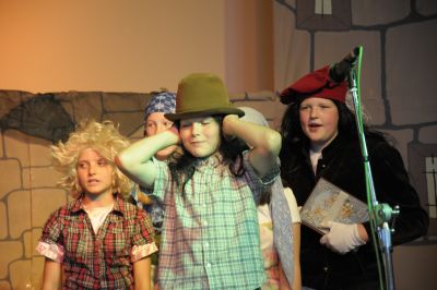 Die Dorfbewohner mögen Jonny und hören begeistert sein neuestes Gedicht:” Es war einmal ein König auf Socken, dem wuchsen die Haare in Locken. Er rief den Frisör, das war ein Malheur, im Kerker muss er nun hocken.” Alle jubeln doch es wird gleich still, als er zur Tagesordnung übergeht:” König Donkeyking (Moritz Conrad) braucht einen neuen Haarschnitt, Freiwillige vor.” Keiner meldet sich, denn alle Frisöre, die Donkeyking die Haare geschnitten haben sind nie wieder nach Hause zurückgekommen. “ Na, gut, dann werden eben die Soldaten kommen und einen von euch gefangen nehmen. ” Kaum hat Jonny seinen Satz beendet erscheinen die Soldaten des Königs.” Jetzt ist aber Schluss mit Lustig!” ,schreien sie. “ Einer von euch muss mit und ich weiss auch schon wer. Paddy!”