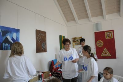 Viele Fragen werden von Adriana immer wieder geduldig beantwortet. Mehrfarbige Kreise sollen auf das Bild von Fabio und die weitere Handhabung wird erklärt.