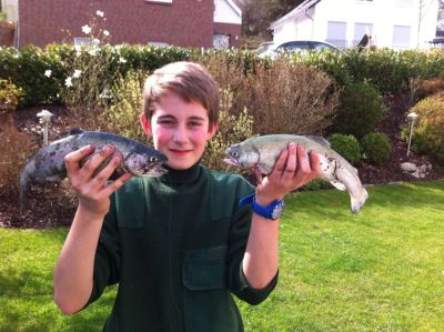 „Meinen Freund Vincent kann ich schon mal überzeugen mich zum Birkensee zu begleiten, oder mein Papa ist mit dabei. Wie bei der Jagd ist auch beim Angeln Geduld und Ruhe gefragt und wenn es dir da langweilig ist, wirst du keinen Erfolg haben. Es dauert manchmal mehr als eine halbe Stunde bis ich meine Angel auswerfe, da ich zuvor das Wasser beobachte und so erfahre, wo sich die Fische aufhalten. Am liebsten fange ich Forellen.“ Einige Bilder von prächtigen Karpfen und Welsen zeigt Leon mir auf seinem Handy. Viele der geangelten Fische, so erfahre ich dann erleichtert, landen aber wieder im Wasser.
