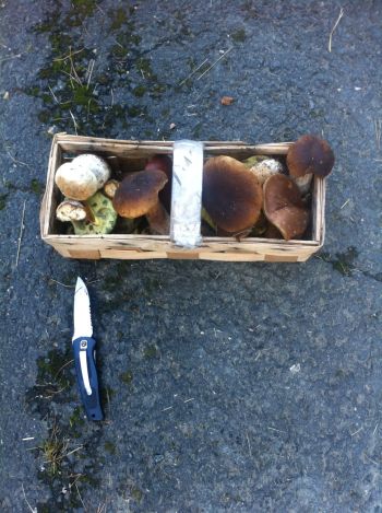 „Meine gute Beobachtungsgabe habe ich sicher geerbt und die hilft natürlich auch beim Pilze finden. Meine Pilzstandorte verrate ich logo nicht, aber dort, wo ich unterwegs bin kommt sowieso kein anderer hin, denn nicht selten krieche ich durchs Unterholz.“ Er lacht und zählt mir flugs mindestens zehn verschiedene Pilzarten auf, die bei uns zu finden sind. Das Foto zeigt seine letzte Ausbeute. Ich erkenne Maronen und Steinpilze. Als ich wissen will, ob die im Korb alle echte Steinpilze sind erfahre ich, dass es mindestens drei verschiedene Arten gibt und wie diese sich unterscheiden! Ich bin geplättet, wie neugierig mich dieser junge Waidmann auf den Wald gemacht hat und als ich ihn noch durch unseren Garten führe lobt er unsere Sedum Stauden, weil sie eine gute Nahrungsquelle für Bienen sind.